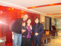 We spent all last evening in our hotel room watching the stream of people file into and out of the hotel, apparently to come in and have a photo opp. in the hotel lobby. We saw women smoothing boys' and girls' hair, straightening their clothes, and standing them up tall in front of the Christmas trees or waterfall in the hotel. The kids would then make a nasty face and glare at the camera. It was funny to watch, but soon we realized that the hotel was getting more and more packed. We could hardly walk in the lobby and thus retreated up to our room, where I watched the "ant line" streaming into the hotel. Out in the street, we heard noise makers, blow horns, and watched as vendors sold light flashers and strange headbands to all the people in the streets. It appeared as if it were New Year's Eve or Mardi Gras down there instead of people celebrating the birth of Christ. To add to that, the headbands adorning people's heads were red spikey horns, devil-like---definately not what we would expect to see on Christmas Eve!